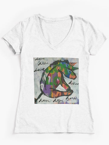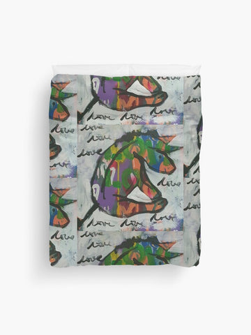 The soft layers of white over the love heart background add depth, while the subtle message of 'love' written across the canvas ties into the overarching theme.