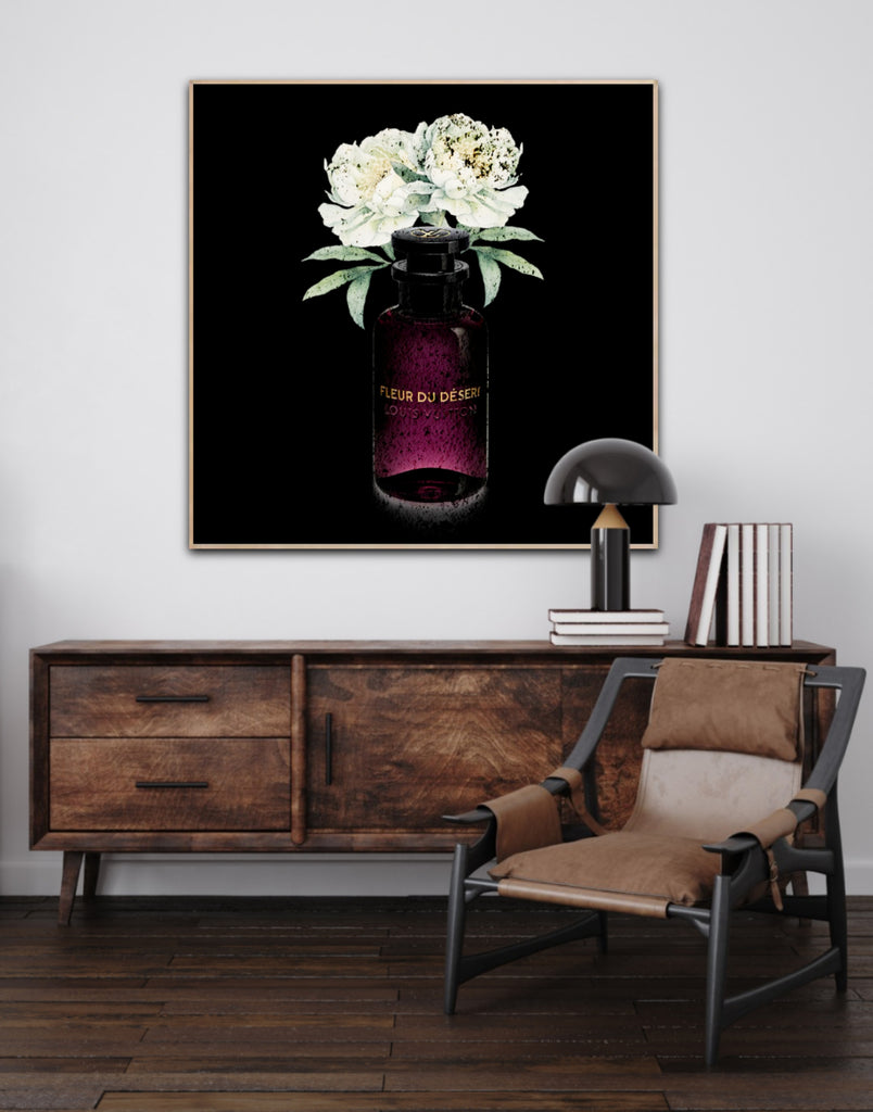 Celebrate the spirit of luxury and elegance with the Louis Vuitton Perfume Series, a stunning collection of fine art prints that blend fashion and florals in timeless harmony. Each piece features the iconic Louis Vuitton perfume bottles, beautifully paired with expressive floral arrangements.